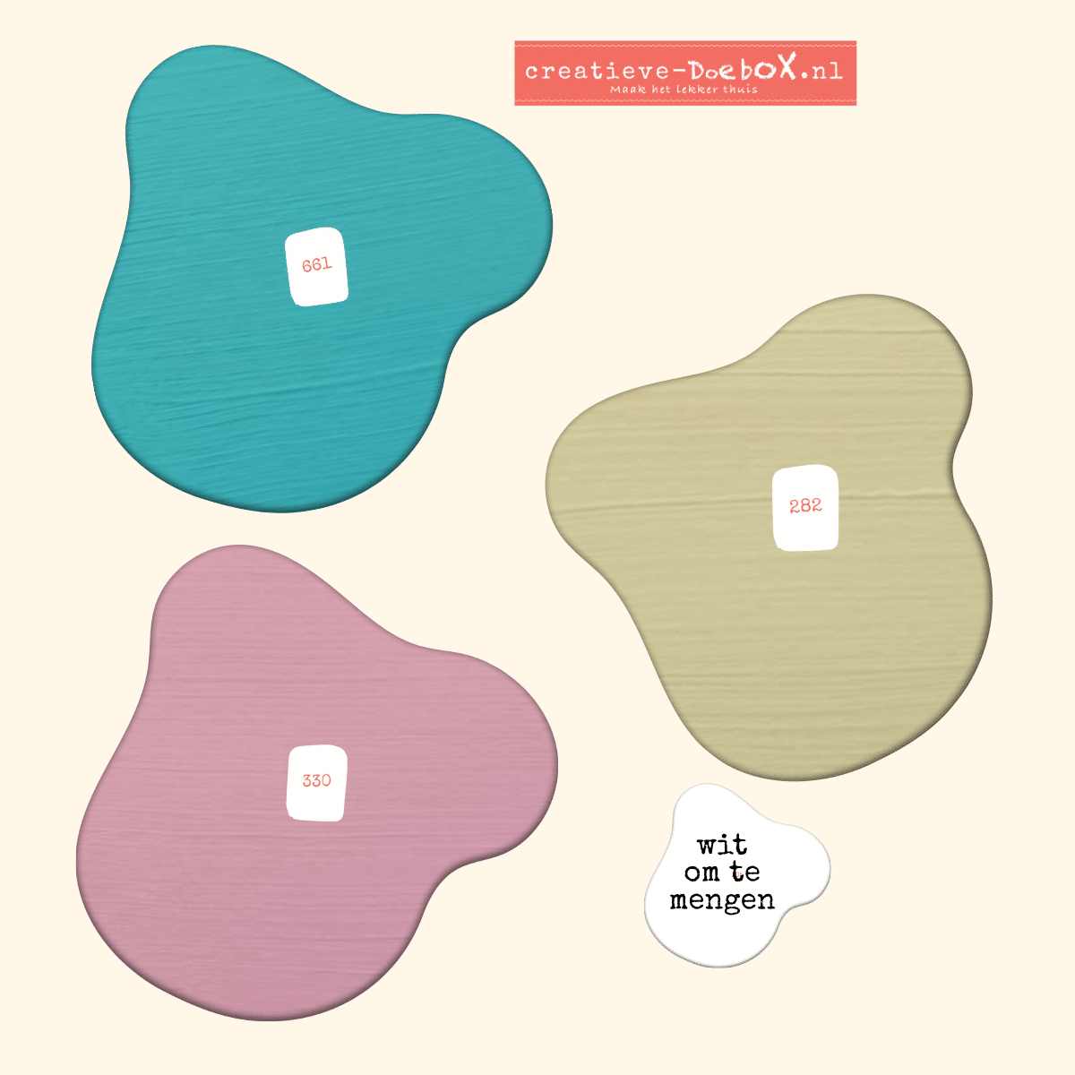 Lente-5 is een dromerig trio pastelkleuren – heerlijk voor rustige, zachte ontwerpen. Lekker schilderen op keramisch gips, in combinatie met het bijgevoegde wit of ivoor.