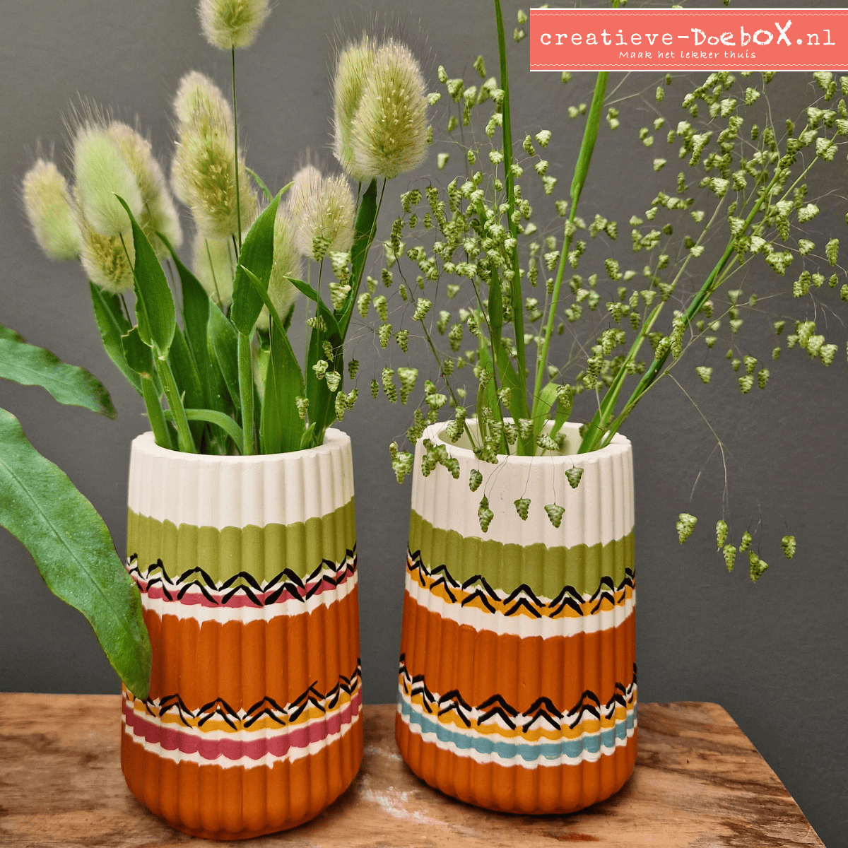 Deze vaasjes zijn niet alleen leuk om zelf te decoreren, maar ook perfect voor een creatieve middag met vriendinnen, zussen of je crea-club. En met een bosje droogbloemen erin? Instant sfeer in je huis of op tafel!